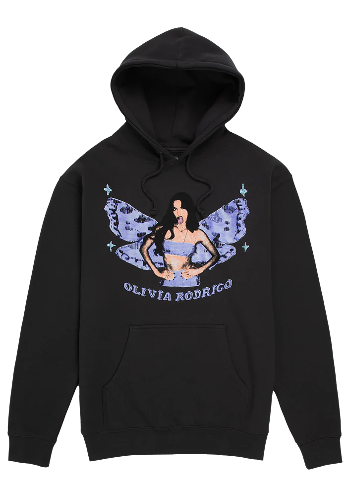 asphalt hoodie featuring olivia rodrigo butterfly wings screen-printed graphic